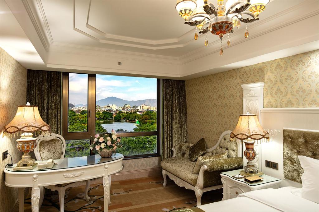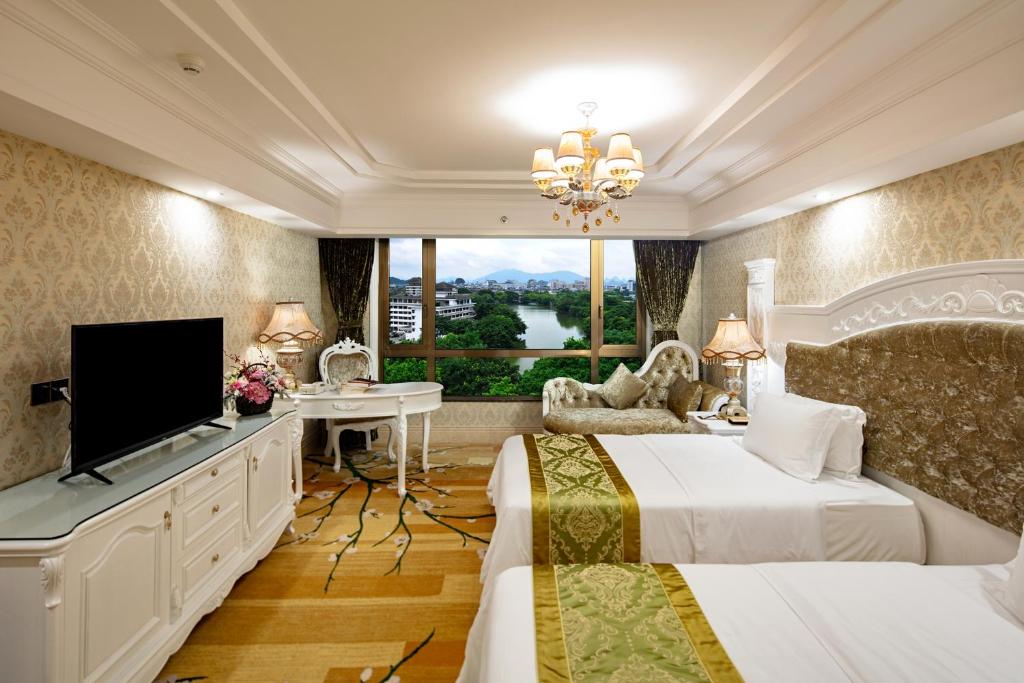 桂林市内の真中でバス停から5分以内と交通の便良し。市場にも近い。人気のレストランも近い。ね部屋は湖に面して二江四湖のナイトクルーズの容湖と杉湖がよく見える。朝夕の散策にも最高です。日本語が通じないがスマホの翻訳機能で対応した。料金も納得です。朝食が安いとさらに良い。