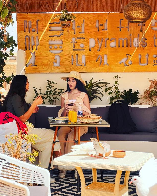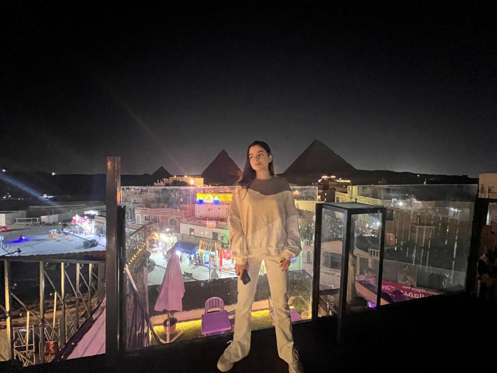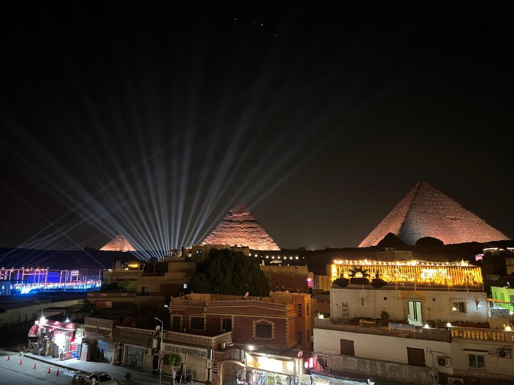 スタッフがみんなフレンドリーで楽しいコミュニケーションができました。屋上からはピラミッドがよく見えます。朝食も美味しくエジプト料理が食べられます。タオル、シャンプー、石鹸、水は備えられています。屋上や部屋は4階まで歩く必要があるので足が不自由な場合は大変かもしれません。スーツケースは快く運んでくださいます。色んな点で本当にラッキーで安心な場所です。