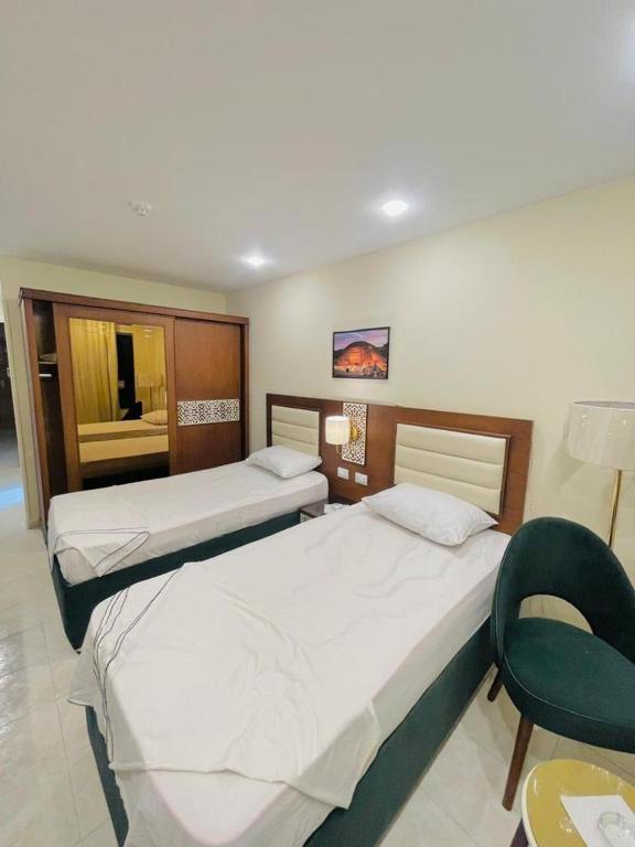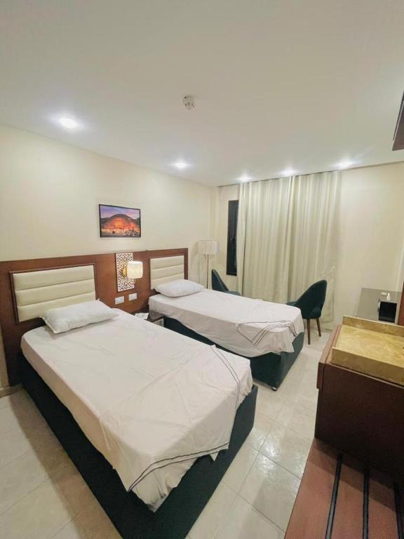 エジプトの客室の鍵はどこのホテルも使いにくい。ホテルはかなり古く、客室設備はボロボロ。昔はいいホテルだったのだろう。客室のバスタブはお湯を溜める栓がないし、バスタブも汚いがお湯は出る。タオルハンガーがは壊れて片方が穴から抜ける。クローゼットはあるがハンガーがない。タオルは使い古された清潔感がない。冷蔵庫の扉がベットにあたって完全に開かない。カップも水もポットもない。お湯とカップを頼んだら、2ドル請求された。日本レベルだと星なしホテル。ホテルからツアーを頼んだが、一般のツアーサイトで頼む方が安い。また、外のタクシーと交渉する方がやすい。移動手段はインドライブで頼むのが一番だ。すぐに来てくれるし、交渉する必要もない。スタッフの対応は良く文句はないが、ホテルが悪すぎた。Wi-Fiは繋がらない。