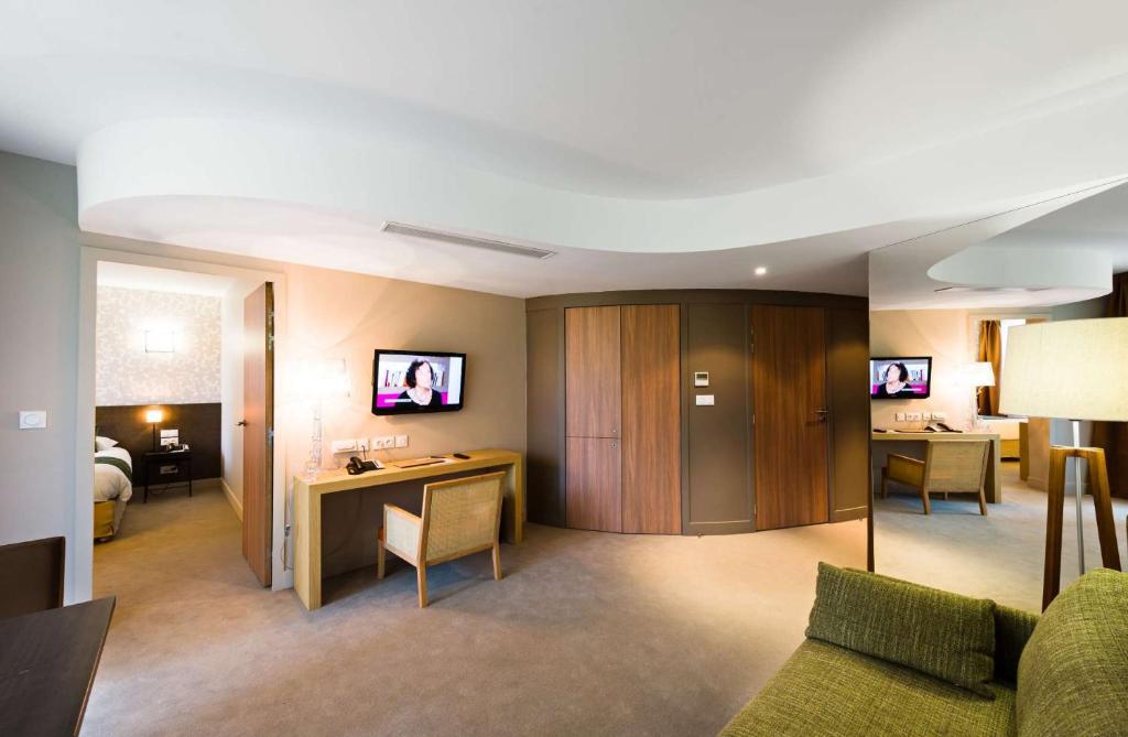 Une réceptionniste qui refuse l’accès au restaurant pourtant réservé en même temps que la chambre et qui 1/2 h après téléphone pour savoir si j’honorais ou pas ma réservation au restaurant…alors que je m’étais rabattue sur un en-cas au bar. Une chambre aux rideaux occultants qui ne se rejoignent pas(10 cm) , une salle de bain au meuble sous vasque digne d’un pays du tiers-monde. Une ambiance de cafétéria d’entreprise due à l’accueil de nombreux séminaires… A fuir!!!