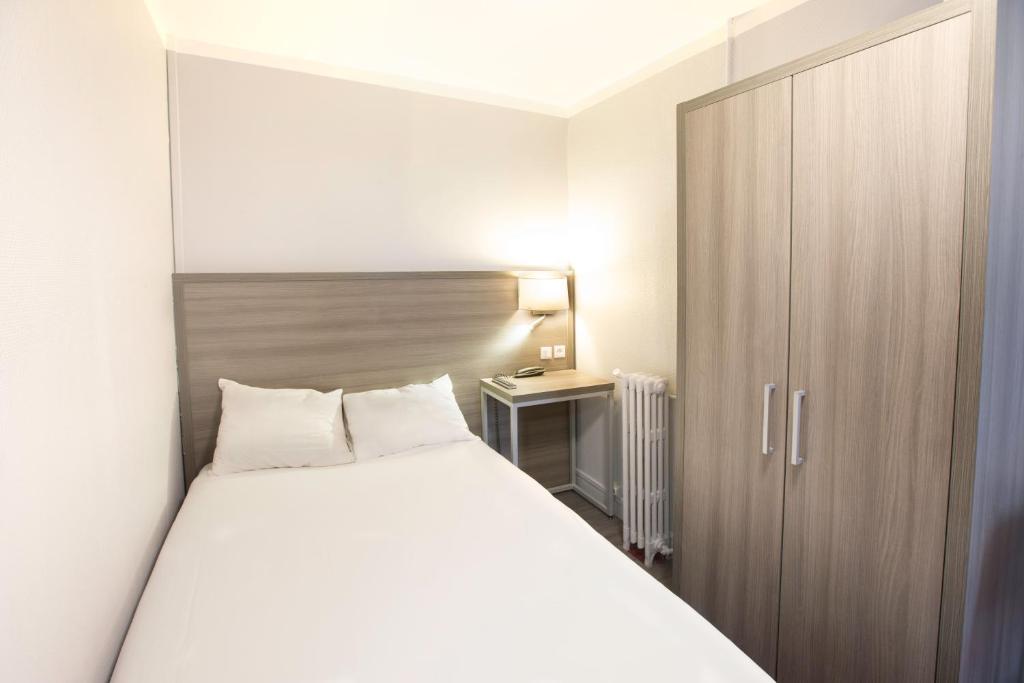 I stayed here for about two weeks on a work trip, and I can genuinely recommend this affordable hotel! The room wasn’t very spacious, but it was more than comfortable for a solo stay. The staff were kind and accommodating. I don’t speak French, but they took the time to speak slowly and clearly in English, which I really appreciated. One of the standout features is the location. It’s incredibly convenient—perfect access to anywhere in Paris. Housekeeping came every day to clean and refresh the towels, which I’m truly grateful for. At the same time, the service wasn’t overbearing—just the right balance. Considering the price, I think this hotel is a fantastic choice. There’s no fridge in the room, but it does come with a large bed, an electric kettle, a closet, and a hair dryer. Hope this helps!
