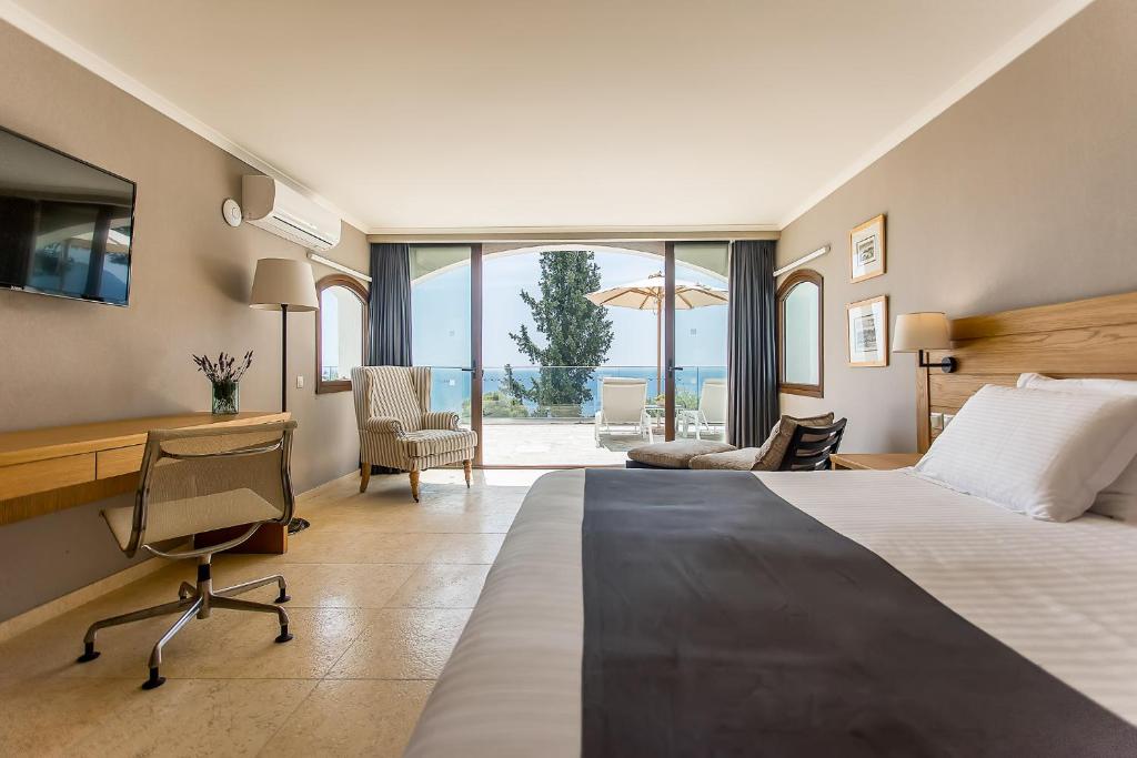 The hotel has stunning views, a nice bar and decent sun loungers. The breakfast quality is really poor, plenty of choice but low quality. Main pool is salt water and the interiors are very dated. Some staff were excellent but restaurant staff where rude