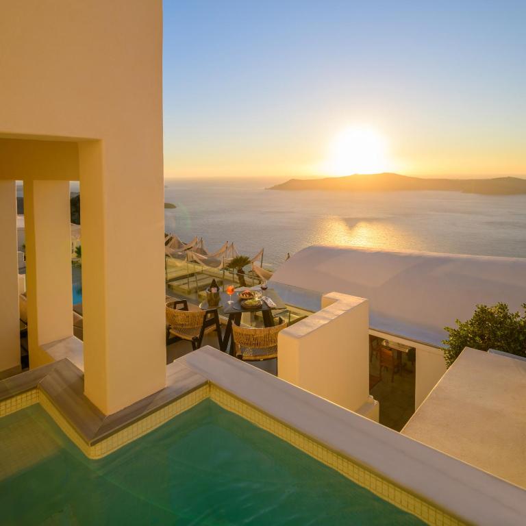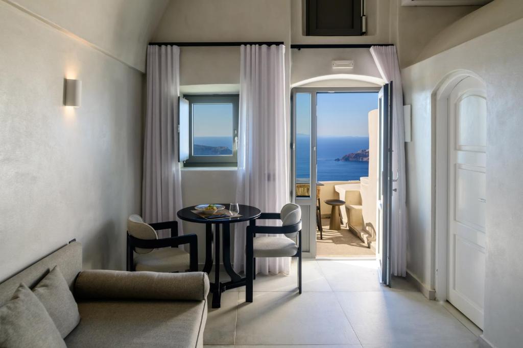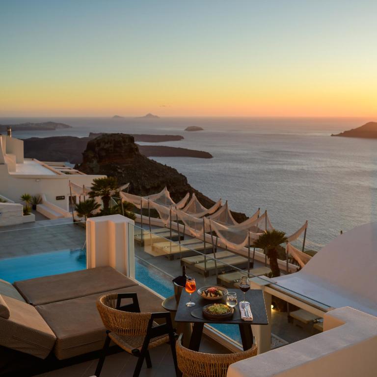 Junior suite does not have a child bed, so staff helped us to switch to a Triple Superior room, which I recommend to families. Pools, restaurant, bar and rooms all have the same amazing Caldera view. Just. should be a bit more family friendly by adding a playroom or corner for small kids, or toddlers.