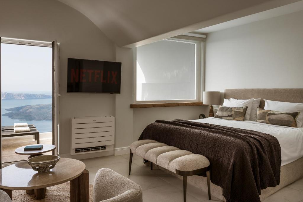 Gorgeous view, very friendly and accommodating staff. Most comfortable bed for our Europe trip. Breakfast served outside your hotel room with a breathtaking view during sunrise and sunset. The room was a bit on the pricier side, but worth it. The hike to Skaros Rock is just minutes away from the hotel. I recommend travelers to book a car to travel around the island easier, and not have to wait in the lines at the bus stop.