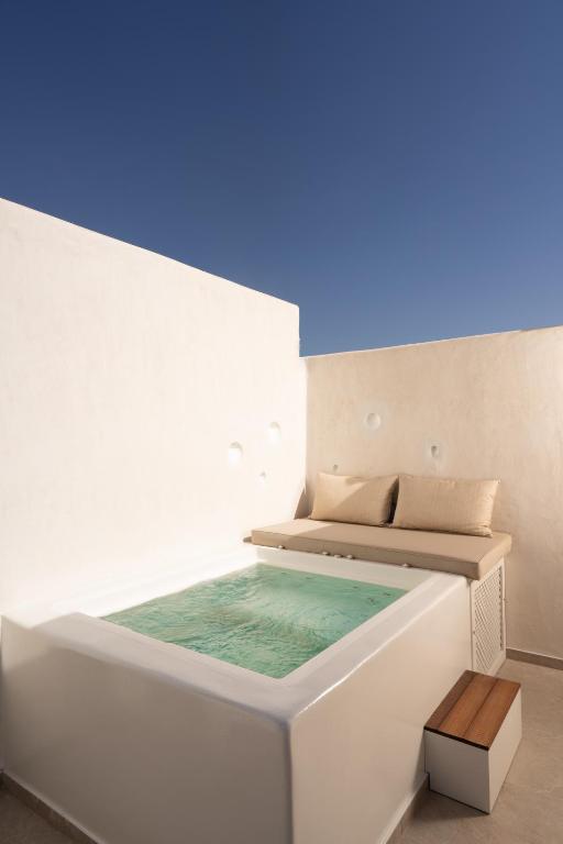 デラックスクイーンスイートでの滞在は素晴らしかったです。4人のグループには非常に快適でした。スタッフはとても気配りがあり、サービスも素晴らしかったです。毎朝朝食が含まれており、好みを選ぶことができました。滞在中に水のボトルも含まれているので、近くの市場で水を購入する心配はありません。部屋は非常に清潔で、外出中に掃除してもよいか尋ねられました。 ジャグジーの温度はそれほど高くなく、翌朝にスタッフが修理に来てくれました。滞在中の一晩、シャワーのお湯が出ないというトラブルがありましたが、その問題は再発しませんでした。 ホテルは主要なバス停やすべての店舗の近くに非常に便利な場所にあります。またサントリーニを訪れることがあれば、ここに滞在したいです。