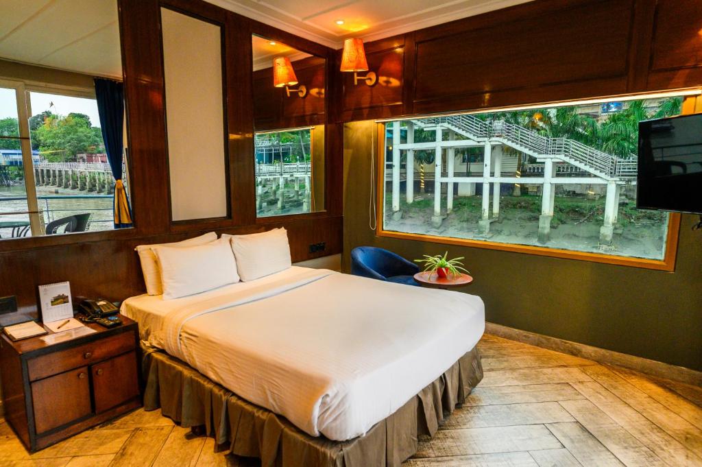 インド初の浮遊ホテルでの素晴らしいステイケーション体験でした!私たちはデッキ付きのヘリテージルームを予約し、フーグリー橋の素晴らしい景色を楽しむことができ、まるでガンジス川の上に浮かんでいるように感じました!