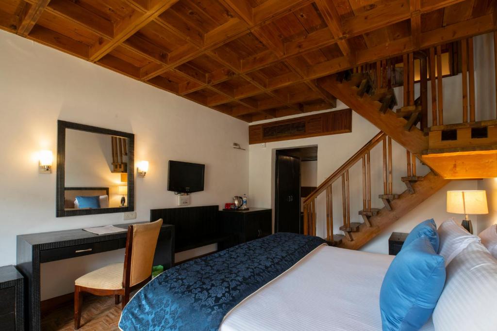 部屋の写真は誤解を招くものでした。私たちは1泊16,000円という驚くべき価格で河畔のデュプレックスを予約し、マナリでの5日間の滞在の中で、このホテルの滞在(2泊)を最も期待していました。到着すると、部屋の古いインフラに驚愕しました。デュプレックスは河のごく小さな景色しか見えず、河向きではなくバルコニーもなく、私たちが予約したのは河岸のデュプレックスでした。部屋やギャラリーはしみだらけです。ギャラリーのカーペットは非常に古く、ギャラリーはそれが原因で臭います。部屋の中やバスルームのすべてのアメニティは数十年前のものです。カーテンから鏡、木製の床、家具、シャワー、蛇口まで、すべて非常に古く、維持されていません(写真参照)。ホテルの外観は良く維持されており、人々を惹きつけるためのものでした。 ビュッフェ式の朝食は限られた選択肢があり、繰り返しのもので、価格に見合っていません。フロントデスクのスタッフはまったく協力的ではありません。昼食や夕食を終えた後、部屋から器を取りに来る人は誰もおらず、何度も呼んでも来てくれません。皿を部屋の外に置いておくと、何時間もそのままです。このホテルのサービスとインフラは、全く価格に見合いません。 ホテルの立地だけが良いところですが、それは家族がこれだけの費用をかけた後の傷ついた気持ちを補うものではありません。