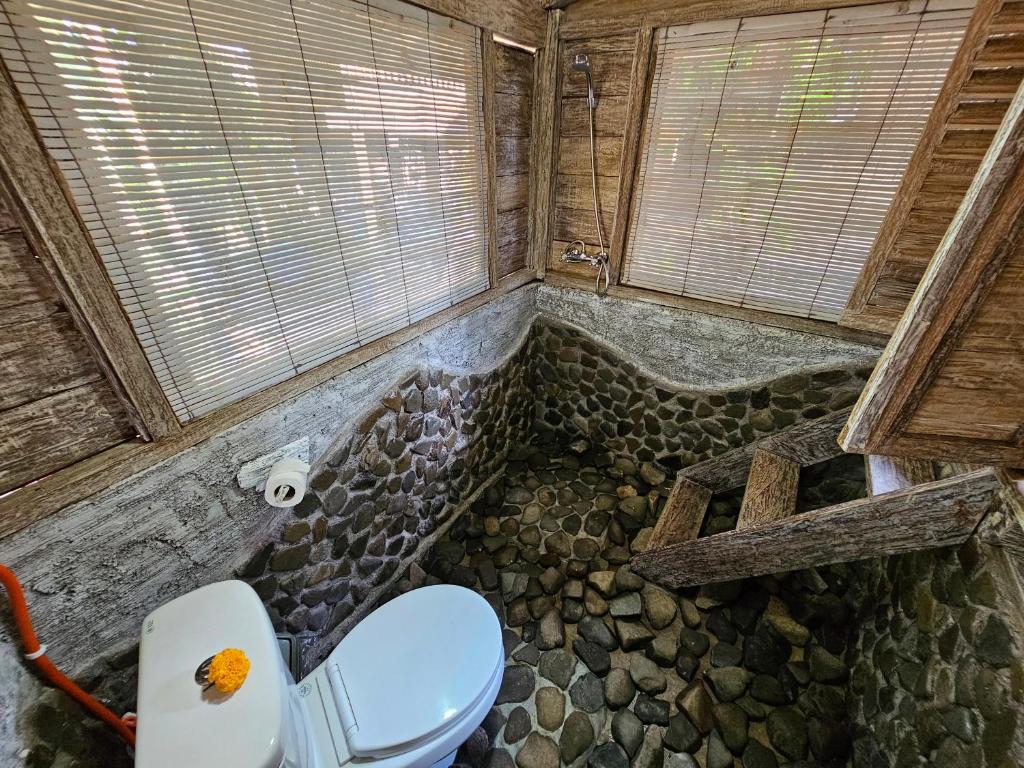 This has gotta be 1 of the weirdest hotels we've ever stayed at. When we checked in the staff took quite a long time to get the paperwork done, and didn't offer to help us with our luggage, which is not a problem but customer service wasn't there. The room is small, looks tacky, NOTHING funky like they advertised. The photos look way better than reality, I think they tried to go for the whole eco-friendly theme but failed miserably. There were rocks in the bathroom floor, made it so hard to get to the toilet, have to step on rocks. There were lizards in the room and 1 actually fell on me while I slept. It was just a weird place, not recommended to ANYONE. PS: Outside your hotel if you get offer transportation from people from Tanjung Alam dive resort, DO NOT accept. They're known to scam people and offer poor service. Especially a fat guy called Julio.