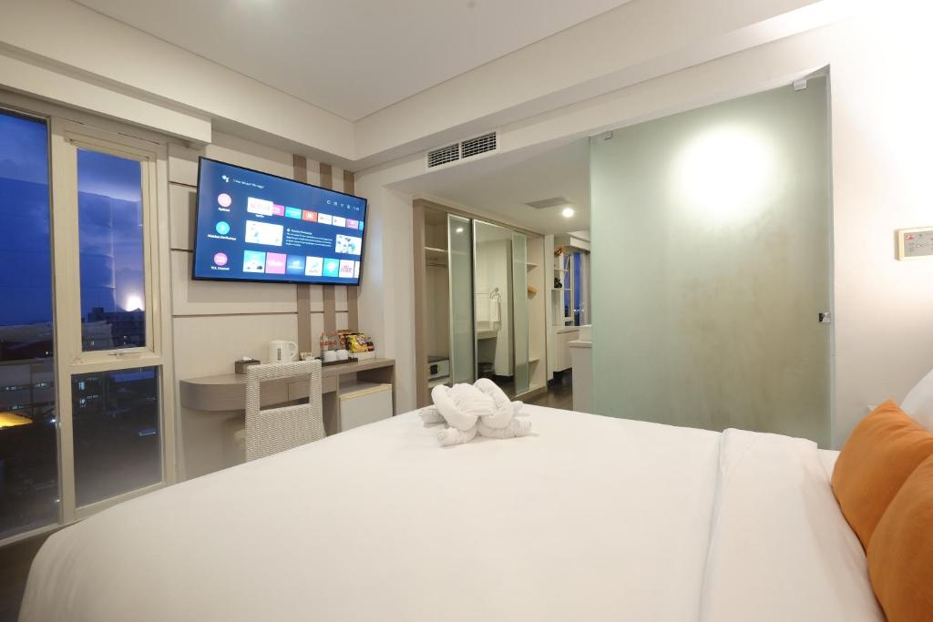 部屋はとても清潔で、白いシーツやブランケットもきれいです。冷蔵庫には熱いお茶やコーヒーを作る器具もあり、スマートテレビも完備されています。お風呂は清潔で温水が使えますし、毎日部屋の掃除とミネラルウォーターの補充が行われ、呼ばなくても大丈夫です。エアコンは十分に冷たく、窓からの景色も素晴らしいです。ハンガーもたくさんあり、とても便利です。清潔さが保証された手頃な価格のホテルを探している人におすすめです。 プールについては、あまり手入れされていないようで、水が泡立って緑色になっていますが、プールサイドの景色は素晴らしく、座る場所やテーブルも用意されています。ありがとう🙏