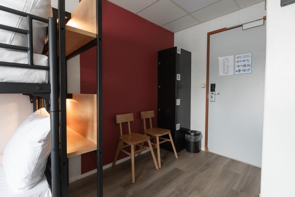 ユニークなコンセプトの素敵なホテルです。アムステルダムのナイトライフを楽しむ予定の場合、真夜中にフェリーの運行が終了するため、理想的ではなく、午前3時頃には選択肢が非常に限られます。家族連れには良い選択かもしれません。部屋はとても小さいです。価格は良いですが、提供される内容に対してほぼ高額です。計画する際の注意点: 部屋には冷蔵庫、シャンプー、コンディショナーはありませんが、金庫はあります。また、窓の代わりにポートホールのある部屋に閉じ込められたので、部屋の小ささには理想的ではありません。もしここで寝るだけ(早めに)を計画しているなら、完璧な滞在先だと思います。