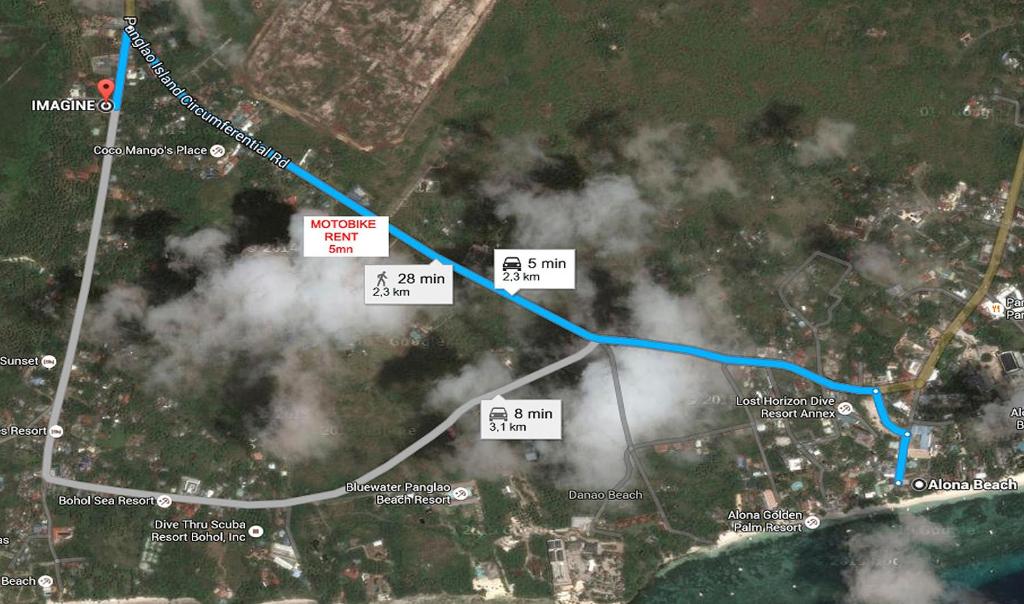 イマジン ボホールは、Bohol Bee Farm (Riau)、MIST、 Toto e Peppinoなどの有名な美味しいレストランがあるパングラオ島に位置しています。