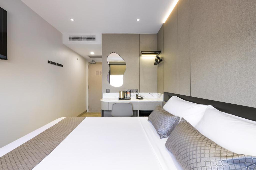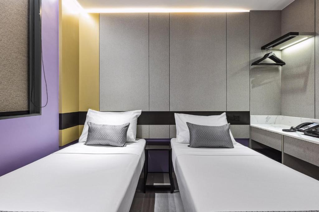 部屋: これは私たちの旅行を少し遅れて予約したときに得た最も安いホテルです。しかし、すべてが新しく改装されているのを見て嬉しく思い、その価格に対して本当に手頃だと感じました。部屋は少し狭く、バスルームもそうですが、私たちは快適に過ごすことができました。唯一の欠点は、荷物が多すぎて、約4つもあったため、特に幼児が一緒だったので、床がとても混雑していたことです。 スタッフ: 彼らは皆フレンドリーです。チェックインのときに息子におもちゃのプレゼントもくれました。クリーニングスタッフは、夜でもすぐに部屋の清掃を依頼できる状況でした。追加の枕を頼んでも、面倒なくすぐに持ってきてくれました。彼らに拍手を送りたいです! 交通: バス停はホテルから本当に歩いて行ける距離です。しかし、私たちはMRTに乗ることを好んだので、毎日そして毎晩、最寄りの駅に着くまで少し長い散歩が必要でした。