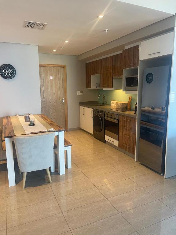 There is no better location in Umhlanga. The view from the patio is spectacular; the beds are comfy, apartment is comfortable and tastefully decorated. Could have been a perfect holiday. Except: I booked a luxury apartment with all appliances. Besides the fact that they don’t provide a single tea bag; grain of sugar or dishwashing tab for ones New Year’s Day here was no service as expected so I went out and bought dishwashing tabs , opened the pack, loaded the dishwasher only to find it was not connected to anything and had to unpack it and wash all the dishes. The frying pan was literally bashed and battered 100 year old. The spatula provided was one of those used on the braai to flip burgers. The tumble dryer is literally falling apart and being held together by tape. There were no beach towels on day 1 so I went to buy some - only to realize that the appliances didn’t work so I couldn’t wash and dry them after the beach. The beach towels were provided on day 2 and then removed for cleaning on day 4 with no replacement. When I complained that we had been waiting all morning for beach towels and that I would simply use the bath towels, I was told I would have to pay for new towels if those were damaged on the beach. The aircon in the bedrooms was not working from day 1. 4 days in the aircon packed up entirely ( it was a Friday night )and we were expected to stay in a furnace for the remainder of the holiday. After the 2nd night with no aircon I very sadly checked into a hotel next door to get some relief from the heat. I kept being promised the aircon would be fixed. By Monday night ( we were going home on Tuesday) it was established that there’s a design flaw in the flat so there needed to be a whole construction job in order to repair the aircon. While I understand that the repair was out of the owners control, she has outright ignored my request for a refund for the days we couldn’t stay due to no aircon. The temperature in the apartment was 31 degree