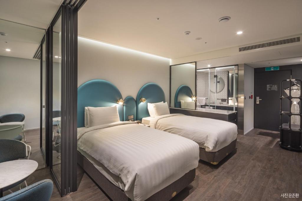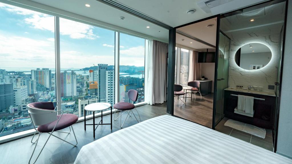 南浦と影島を楽しむのに良い位置です。 クリスマスの時に南浦のツリー祭りを見るために予約しましたが、位置が良いので移動が便利です。 歩いて少し行けばすぐに南浦です。 デリバリーの食べ物も問題なく届きます。 外国人が本当に多いです。1階のロビーには常に外国人たちが騒いでいます。ロビーが狭いのでかなりうるさいです。 スタッフの親切さは期待しない方が良いです。 駐車場のバレーパーソンが一番親切です(最高)。ロビーのスタッフはどうでしょうか、チェックイン・アウトの時に挨拶のない方もいらっしゃり、表情が常に重たく、言ってしまえばただ仕事をしたくない感じが見受けられます。逆に駐車場にいる方々は年齢があり、経験が豊富なので親切に対応してくれました。出車のティップもいただき、おかげで早く出られました。ありがとうございます。 部屋はかなり寒いです。 コーナールームに宿泊しましたが、壁が全てガラス張りで床が大理石なので暖かい感じはありません。室内温度をフルに設定してもホテル側で24度に固定されているので意味がありません。 普通のパジャマだけでいると夜と朝はかなり寒いです。寝る時は布団が厚くて保温性が良いので問題ありません。 シネマパッケージは必須です。 ない部屋の場合、テレビはただの装飾品です。 スマートではなく普通のテレビなのでOTTが使えず、YouTubeも見れません。必ずシネマパッケージで利用することをお勧めします。そうでない場合はタブレットやノートパソコンなどの電子機器を持参することをお勧めします。 駐車はタワー形式なので、チェックアウト時に出車に時間がかかることがあります。10時以前にはすぐに出車できました。人が集中する時間帯には50分ほどかかることも多いです。待機室が狭く寒いため、人が集まるとかなり不便なので早めまたは遅めに退室することをお勧めします。 トイレがかなり狭いです。 トイレの隣にシャワーブースがなく、シャワーが一つあるだけです。バスタブなし。 安い価格の部屋をお勧めします。人気のコーナールームに宿泊しましたが、ビューは本当に良いですが、実際にはカーテンを閉めていることが多く、ホテルでビューを楽しむ時間もあまりないので安い部屋をお勧めします。 ラバルスでは安い部屋もビューが良く、価格に対して悪くないので、その点を理解して利用するのがかなり合理的だと思います。 もしホテル滞在を求めるのであれば、無条件で5つ星に行くのが正しいです。4つ星と言っていますが、対応と親切さを見ても3つ星よりも良い点はありません。