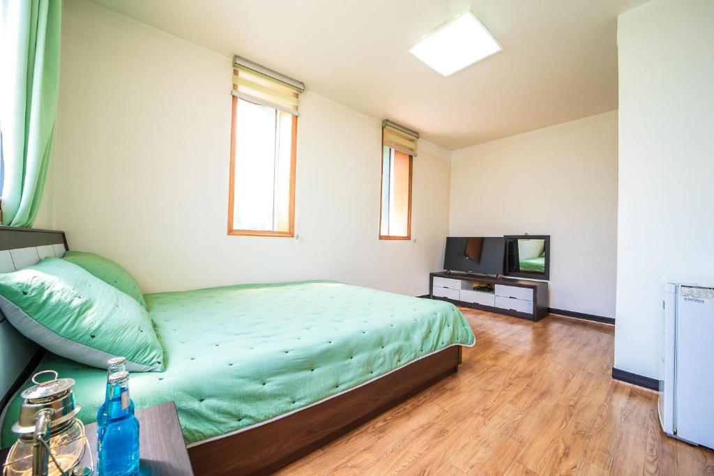 Hotel has a cafe in first floor with pretty view of river and cheery blossom. Rooms are clean, neat and cozy. The owner not speak much english but so helpfull and nice. Location is 1.6km away from Hwagae market which a bit long to walk at night.
