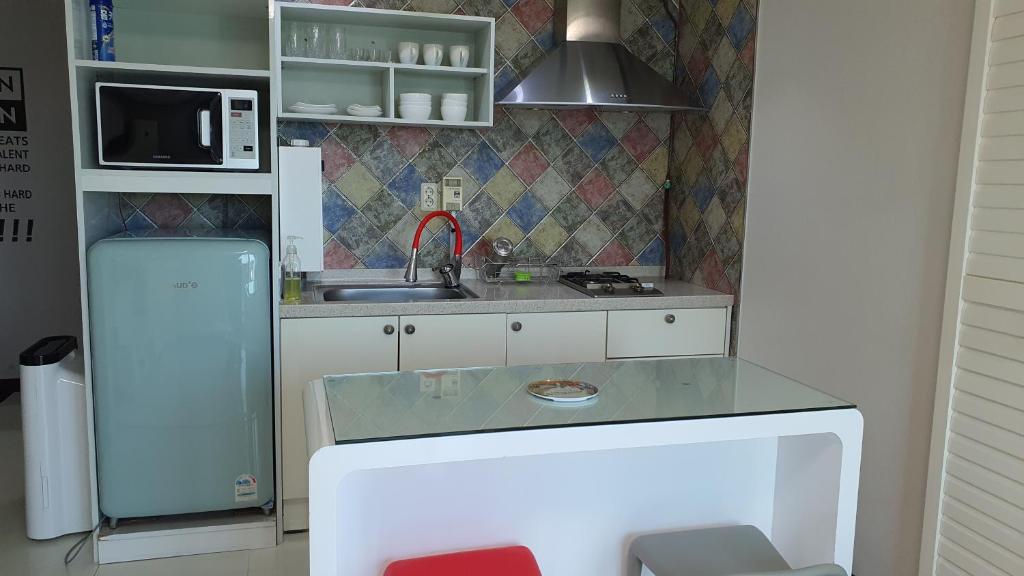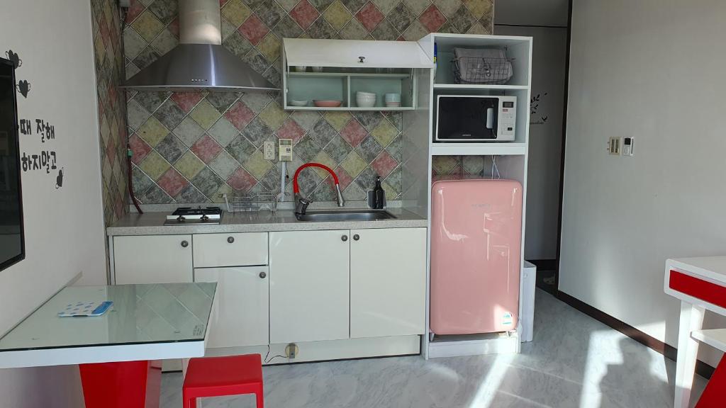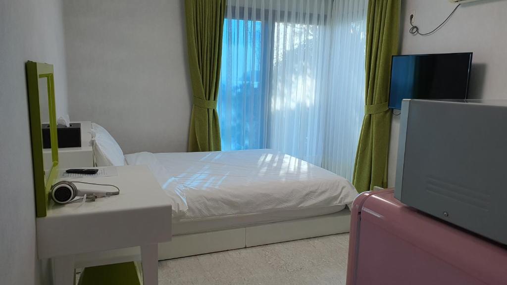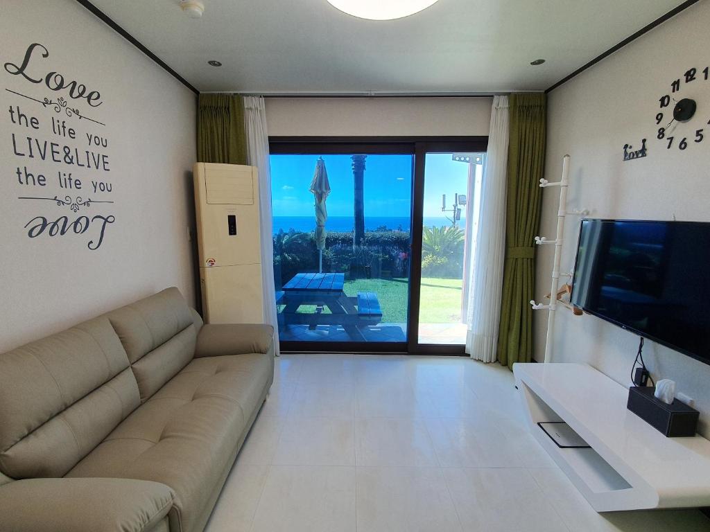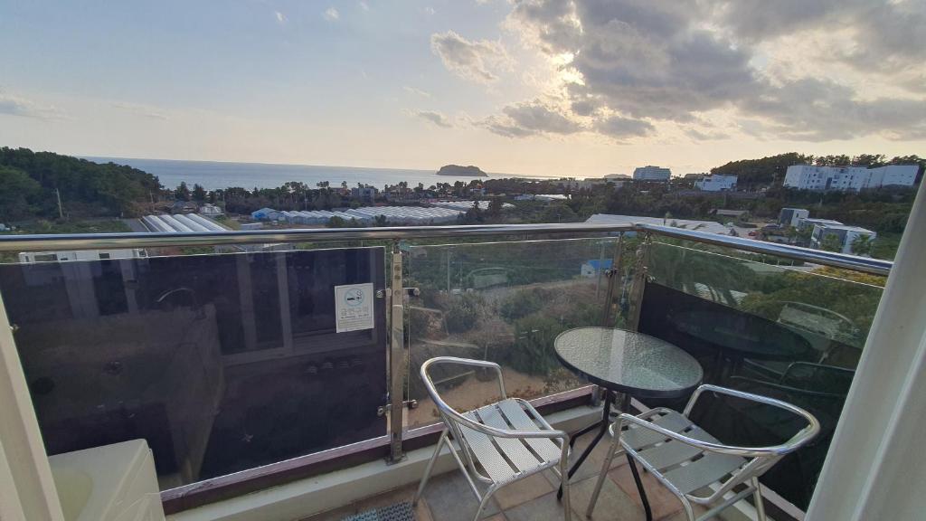 Stayed here for a night while biking around Jeju. Very clean, modern pension. The staff (owners) were very nice, helpful, and welcoming. We stayed in a room with a spa bath on the balcony which was amazing after biking 50 km! Would be happy to stay here again. Beautiful view and area