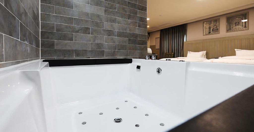 部屋は広くて清潔で、必要なすべてのアメニティが揃っていて、ウォシュレットトイレもありました。モクポ駅の近くでビジネスをするには完璧な場所です。私が難しいと感じた唯一のことは、テレビのリモコンでした。私は韓国語が流暢ですが、それでもリモコンでVODからテレビチャンネルに切り替えるのが複雑だと思いました。