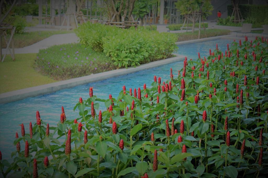 レイン コンド チャアム ホアヒンは、Plumeria、 Golden showerなどの自然が豊かな観光地があるチャアム ビーチフロントに位置しています。