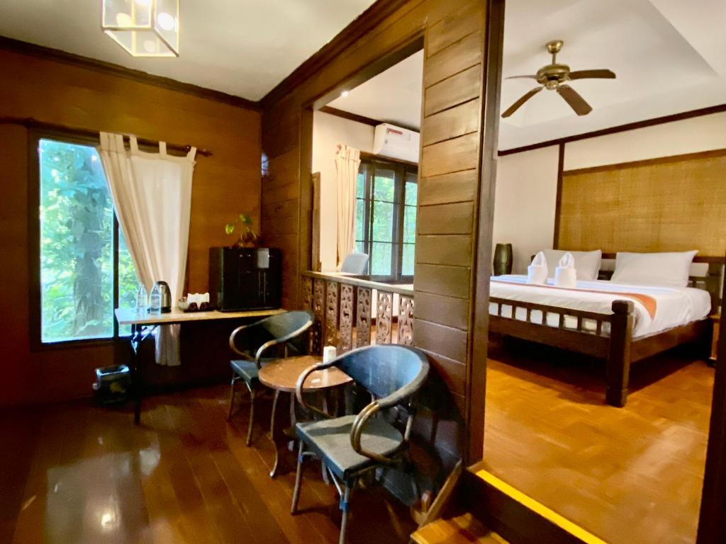 とてもフレンドリーで歓迎してくれるスタッフ。部屋は広々として快適ですが、少し更新が必要です。一番の魅力は、美しい緑に囲まれた素晴らしい景色とプールを持つこの施設自体です。非常に広い敷地で、メー・ホーンソーン・ループをライディングした後にリラックスするには素晴らしい場所です。