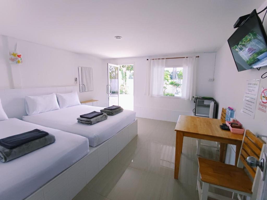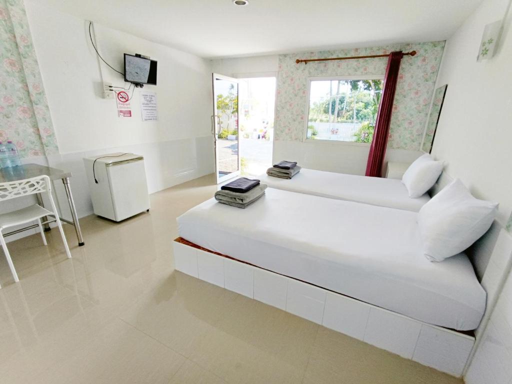 ハイウェイのすぐ隣にあり、その立地にもかかわらず予想以上に静かですが、夜はまだかなり騒がしいです。 スタッフはフレンドリーです。 チェックイン時に現金で100バーツのデポジットが必要(チェックアウト時に返金されます)。 朝は無料のコーヒーがあります(私は試しませんでしたが)。 部屋は広くて清潔で、シャワーはまあまあです(適度な水圧と温水があります)。 悪い点:部屋に蚊がたくさんいて、毛布はシーツなしのフリースカバーだけです。タオルは柔らかいマイクロファイバーのようなもので、触り心地は良いですが、一滴の水も吸収しませんでした。