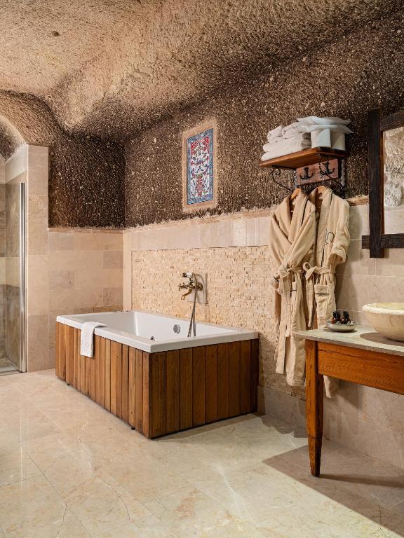 アザ・ケーブ・ホテルは、カッパドキアで本当に特別な宿泊先です。丘の高い場所に位置しているため、少し歩く覚悟が必要ですが、景色は息をのむほど美しく、言葉では表現しきれません。 客室は洞窟ルームまたは石のルームで、非常に素晴らしく装飾されています。デザインは考え抜かれ、温かみがあり、周囲と調和しているため、快適でユニークな滞在を感じさせます。 敷地内には猫がたくさんいて、ここでの生活の一部となっています。また、ホテルの共用スペースには心地よい暖炉が灯されており、特に夕方には雰囲気を盛り上げています。 大きな魅力は、温水の屋外プールです。涼しい気温を考えると素晴らしく、滞在を贅沢でリラックスしたものにしてくれます。 隣にあるセテンのレストランを素晴らしいおすすめとして紹介してくれ、結果的に地域での最高の食事の一つとなりました。また、スルタン・ケーブ・スイーツのテラスにもアクセスでき、通常の混雑を避けながら素晴らしい景色を楽しむことができました。 全体として、アザは壮観な景色、美しくデザインされた部屋、穏やかで雰囲気のある体験を提供してくれます。少しの歩行に抵抗がなく、忘れられない環境を求める方にとって、カッパドキアでの優れた選択肢です。