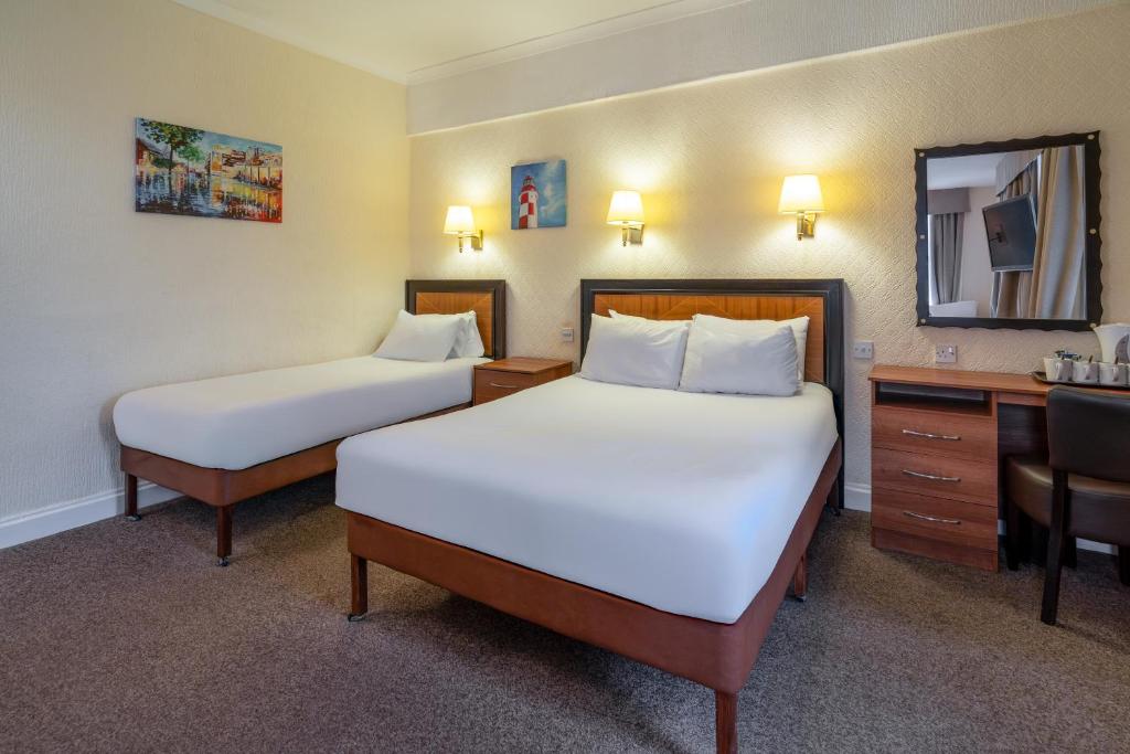 この選択に非常に満足しています。ビーチはほぼ無限に広がっており、駐車場の外にはトラムとバスの停留所があります。背面には便利な店舗とカフェがあり、2駅先にはバーやレストラン、より大きなスーパーマーケットがある素敵な町があります。受付とラウンジには大きな海の眺めを楽しめる大きな窓があります。スタッフは親切で助けてくれます。いくつかの施設は短期間の工事中ですが、全体的には広々とした清潔な部屋と公共エリアがあり、アップグレードされたレストランと本格的なワインバーがあれば素敵です。オープンラウンジとエンターテイメントエリアには快適なバーがあり、他の端にはスポーツバーがあります。リラックスして散歩を楽しんだ後、トラムに乗ってブラックプールが提供するさまざまな景観を楽しむことができます。朝食は適度な選択肢があり、良い標準で調理されていますが、中程度の品質の食材です。夕食のメニューは日替わりで、実際に外食するのと比較してもシンプルな3コースの食事と便宜を考えるとコストパフォーマンスは良いです。朝食前に購入すれば、3-4.50ポンドで済むこともあります。価格、清潔さ、立地が、私がこの宿泊施設に高得点を付ける理由です。私が持っていた部屋は快適で十分でした。長期滞在にはソファ付きのスイートがあればよかったと思います。