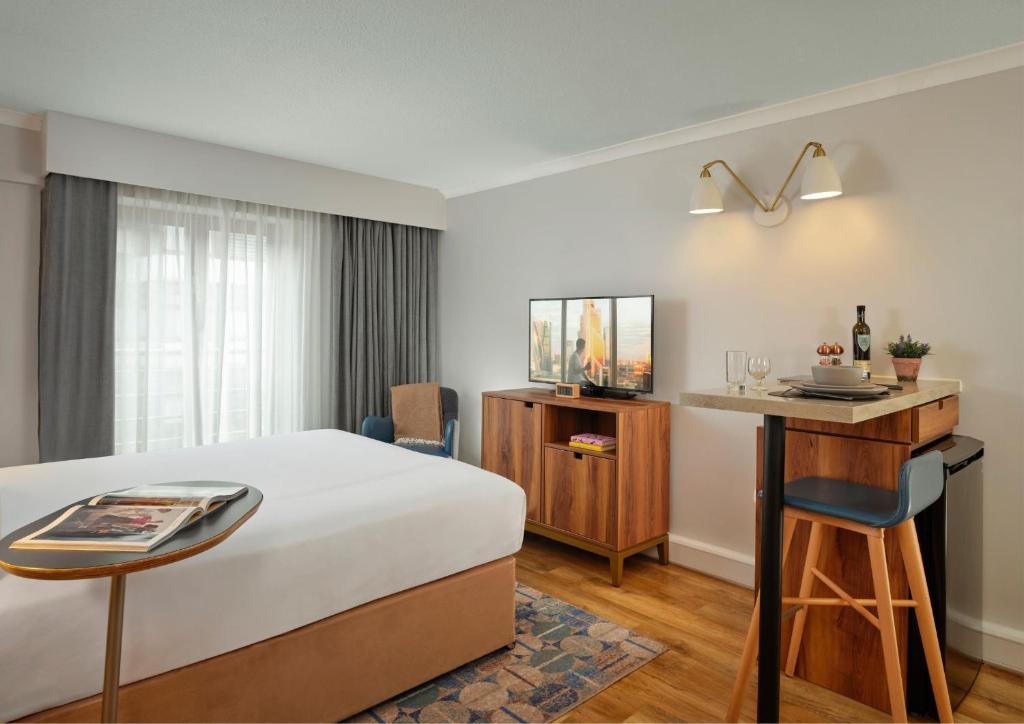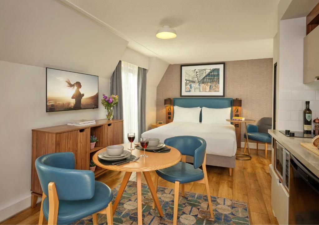 私たちは一泊の滞在をしました - 娘と姪が参加できる「ピクニック」をするためのスペースがある素敵なスタジオルームでした。バービカン地下鉄の近くで、ファリンドンのエリザベス線にも近いです。チェックアウト後、セントポール大聖堂とテムズ川に歩いて行きました - 素晴らしかったです。 チェックインも簡単でした。 全体的に、狭い部屋や遠い場所、目が眩むような費用がかかる代わりに、素晴らしい体験でした。
