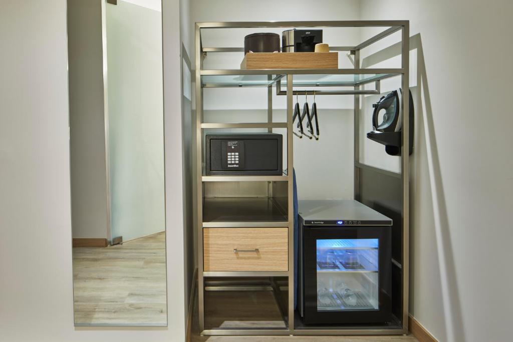 欠点:私たちの部屋は素敵でしたが、クローゼットや引き出しの状況は変でした…。小さい引き出しが2つと、約1フィート半のハンガースペース(ハンガーが4つ)しかありません…。なので、スーツケースから生活するか、テレビの下のベンチに服を畳んで置く覚悟をしておいてください。 エレベーターは永遠にかかる!だから、もっと歩数を増やすために階段を使ってください! ドアは重いので、開閉するのには少し力が必要ですから、強い準備をしておいてください。 良い点:ベッドは快適で、バスルームも素晴らしい - 大きなシャワー、たくさんのカウンタースペース、素敵なタオル。スタッフはフレンドリーで、ビーチの近くの良い場所にあります。ジムには3台のトレッドミル、2台のエリプティカルマシン、そしてたくさんのスペースと選べるウェイトがある自転車があります。