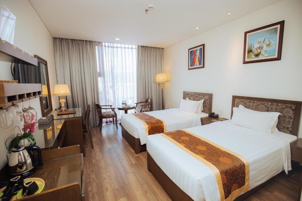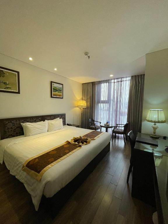 多くの四つ星を主張するホテルとは異なり、このホテルは実際に資格を持っています。 フロントオブハウスマネージャー(英語を話す)素晴らしいです。 最も混雑するテトの時期でさえ、基準が維持されています。 私は部屋で平和と快適さを享受し、すべての要件が満たされました。 朝食はアジア料理のみですが、ホテルの管理者は西洋の食事に対応し、食物アレルギーについて学ぶことに関心を示しています。
