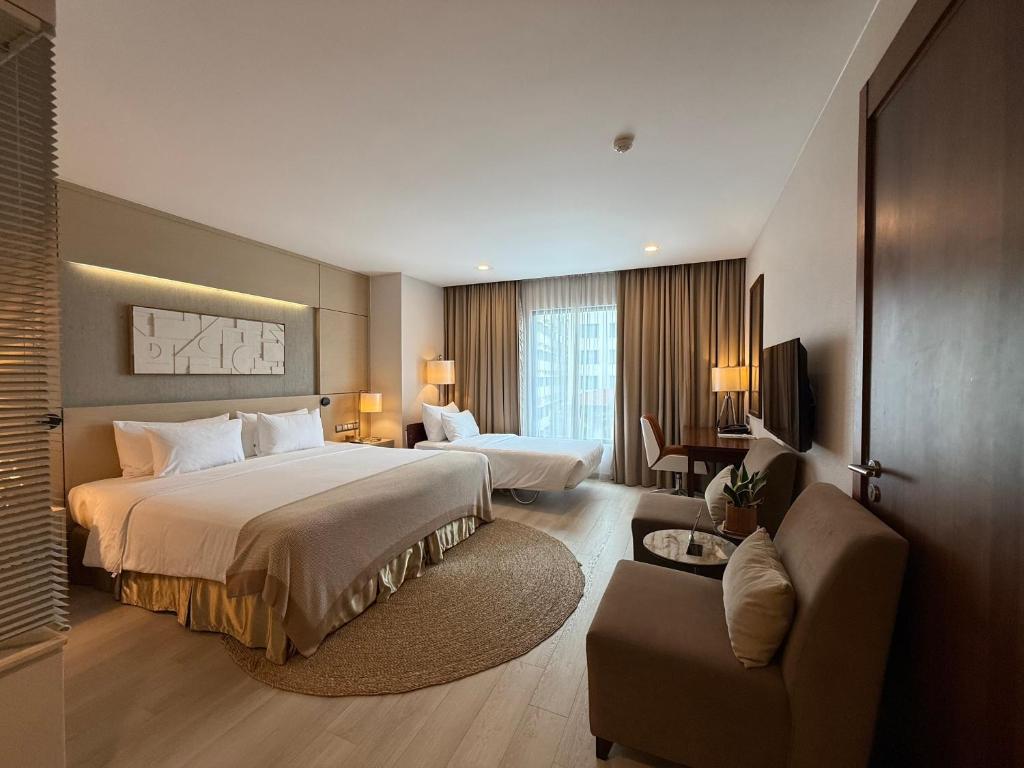ポイント: - 美しいロビー - スタッフが親切 - 部屋は広くて清潔 - 向かいにサークルKがある 欠点: - 自分の滞在している階はスパがある階なのに、なぜかその階の匂いが非常に不快で、車に乗っているようだった - トイレにはシャワーノズルがない*少ない?非常に不便 - 冷蔵庫は氷を作れないのに氷用トレイがある - ここでのランドリーは非常に高い!リゾートホテルで何度も洗濯したが、ここで洗濯するのがこんなに高いとは思わなかった。自分のお金が100万以上かかった(ホテルに料金表があったが、見なかったので、洗濯する人は注意してください)