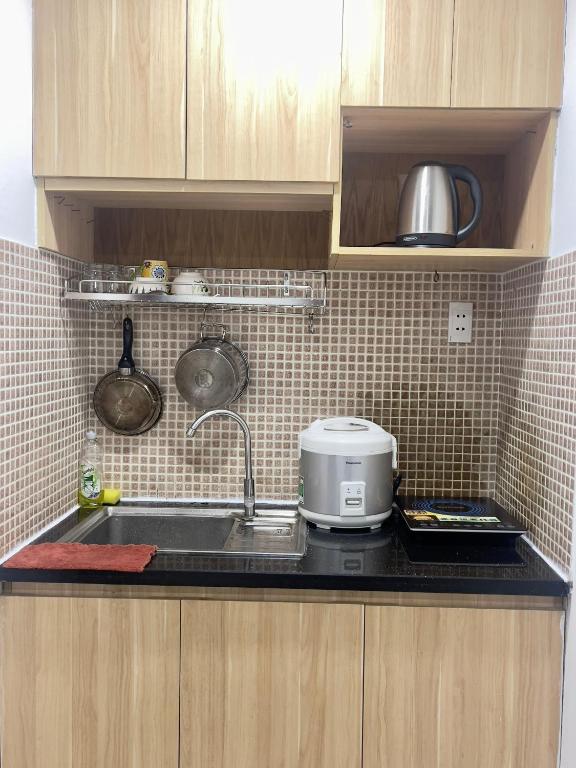 Was a little taken aback when I entered the room. But once I settled in everything was starting to make sense. Comes with kitchen, bathroom and a sliding glass door to seperate the kitchen and bed if needed. But the stair of the show was the balcony. A little tricky to open but after 1day the view when the sun goes down and the lights come on from the surrounding area is just spectacular. You really get a sense of the landscape with bridges crossing over and traffic and people going through their everyday life in a modern Vietnam.