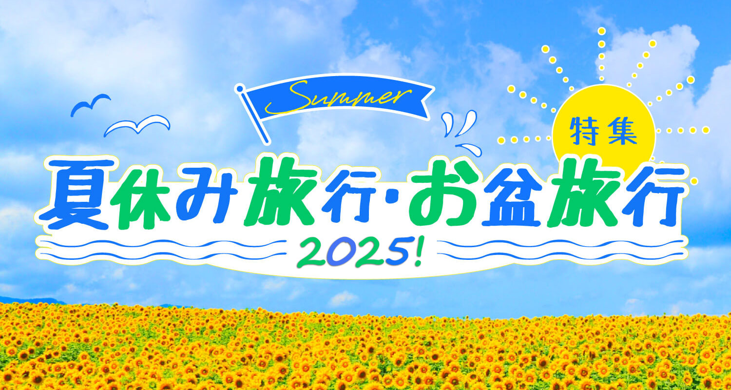 週末やお盆期間の人気観光地を夏休み特集2025では「イチオシ観光スポット」を紹介しています。自然豊かな地域でゆっくり「グランピング」や「星が見える宿」で過ごすのもおすすめです。