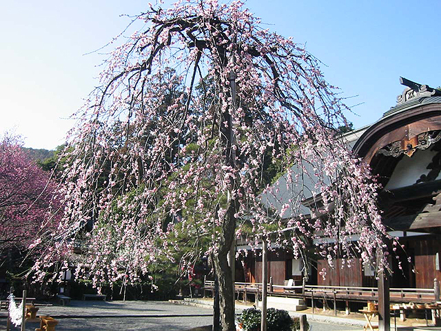 恵林寺近くにある甲斐源氏ゆかりの古寺で、開創は元暦元年(1184)。宝物殿には本尊の大日如来、天弓愛染明王[てんきゅうあいぜんみょうおう]、金剛力士像(仁王門内)と不動明王の仏像(重要文化財)が納められている。境内には、早春に梅、続いて桜、花桃、ぼたん、初夏に紫陽花、夏に蓮と次々と花が咲く。四季折々に花が咲くため、花の寺とも呼ばれている。