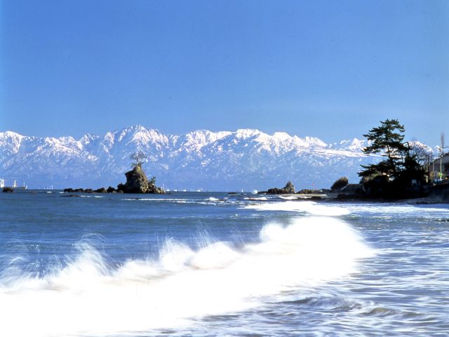 高岡では曹洞宗の巨刹・瑞龍寺や、千本格子の家並みの金屋町、土蔵造りの町並みが残る山町筋など、レトロな街並みを楽しめます。また、岩礁が多く白砂青松の景勝の地で日本の渚百選の一つにも選ばれている雨晴海岸が見どころです。天候が良ければ立山連峰を望むことができ、絵に描いたような絶景に出会えます。富山湾に面した氷見や新湊では、ブリやホタルイカなどの新鮮な魚介が楽しめます。