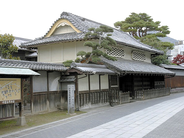 薪問屋、石炭問屋、製塩業、醸造業を営んでいた豪商の家。唐破風の円みを帯びた屋根、菱格子に塗籠の窓彫りをはめ込んだ出格子など、江戸末期の重厚華麗な浜旦那[はまだんな]の家として公開されている。