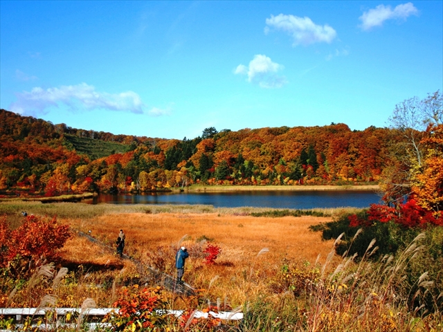 大沼湿原に整備された散策路。大沼を囲むように木道が敷かれ、森や湿原の植物を観察しながら30~40分で1周できる。標高約1000mに位置し、レンゲツツジやワタスゲなど高山植物の宝庫でもある。春や初夏、紅葉の時期が見ごろ。