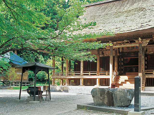 和銅元年(708)、行基菩薩創建の古刹。貞観2年(860)、慈覚大師が現在地に移した。正式名は、鈴立山若松寺。入母屋単層造銅板葺きの観音堂に安置されている金銅聖観音像懸仏は、観音堂とともに国の重要文化財に指定。昔から縁結びの観音として親しまれ、西の出雲大社、東の若松観音として有名だ。めでためでたの若松さまと、花笠音頭でも歌われている。