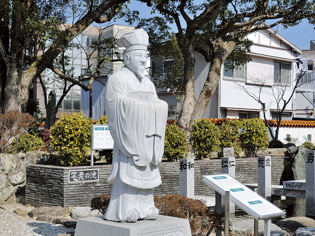 新宮駅の近くにある、中国風の楼門がひときわ鮮やかな公園。園内には、徐福の墓や顕彰碑、徐福の重臣たち7人を祭った七塚の碑などがある。徐福とは、中国の歴史書『史記』によれば、今から約2200年前、秦の始皇帝に方土(仙術者)として仕えた人。皇帝の命を受け不老不死の霊薬を探しに、東方に浮かぶ蓬莱の島に向かって出航した。熊野で不老長寿の木といわれる天台烏薬を見つけたが、気候温暖で風光明媚な土地柄を気に入り、熊野を永住の地とした。土地を開拓し、農耕、漁法、紙すきなどの技術を伝えたといわれる。毎年8月12・13日には徐福を供養する万燈祭が行われ、花火等で賑わう。