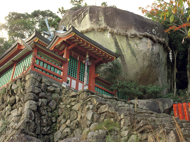 市の西方、千穂ケ峰の南端に位置する神倉山。538段もの急峻な石段を上ると、大きなゴトビキ岩がある。この巨石が古くからの御神体で、熊野の神々が初めに降りた聖地として、太古より神の磐座として崇めてきた。現在は神倉神社として高倉下命[たかくらじのみこと]と天照大神[あまてらすおおみかみ]を祀っている。日本最古の火祭り「お燈祭」(国指定重要無形民俗文化財)でも有名。毎年2月6日に白装束に荒縄を巻いた2000人もの上り子が松明を手に急な石段を駆け下りる。新宮節に「山は火の滝、下り龍」と歌われるほどの勇壮な火祭りだ。