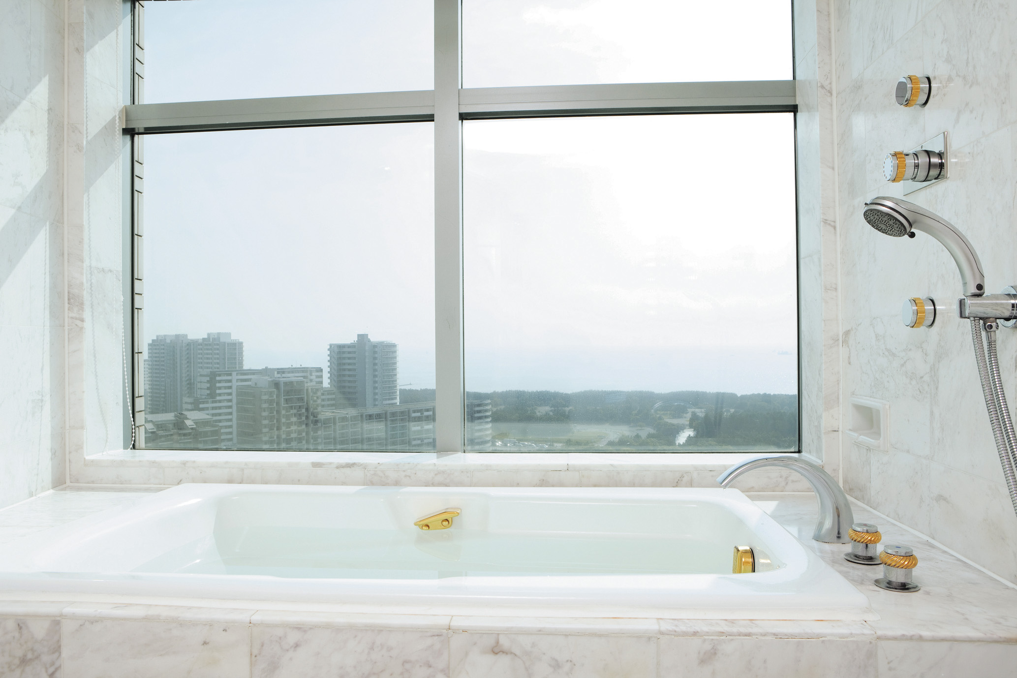 マンハッタンスタンダードのお部屋のバスルームには大きな窓があり、外の景色を眺めることが出来ます。総大理石のバスルームや洗面台の鏡は写真映えすると人気!