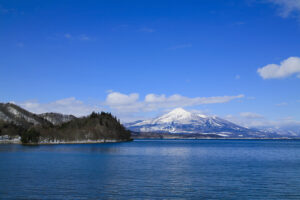 冬には強風にあおられた湖の水が周囲の木々に付いて凍る「しぶき氷」や、飛来する白鳥が見ものです。まさに自然が作り出した芸術とも言え、雪化粧を施した磐梯山とのコラボレーションには、思わず息を飲んでしまう冬の絶景です。