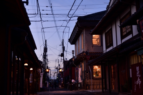 豊臣秀次によって開かれた城下町。琵琶湖の水運に使われた八幡堀や、商家の邸宅、土蔵などが並び江戸時代のような街並みが広がります。