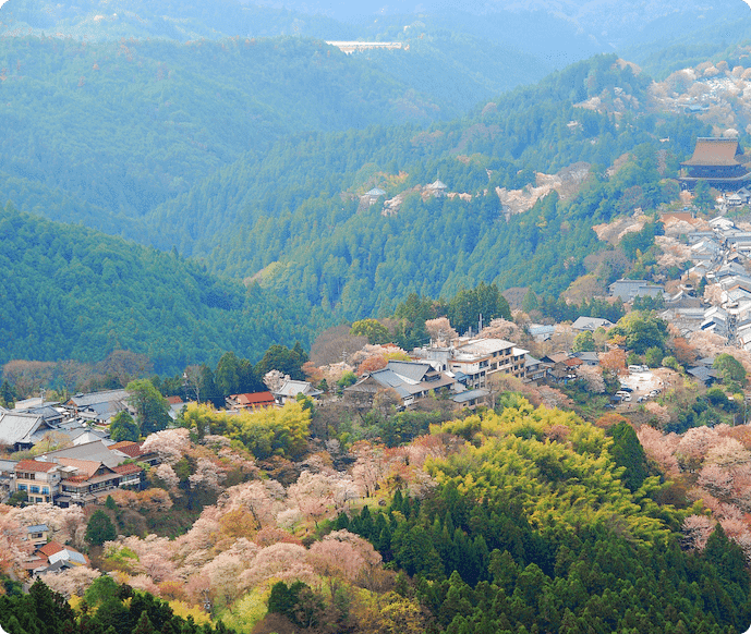 日本でも有数のヤマザクラの名所として知られる吉野山。他にも山岳、河川、海岸と見どころ盛りだくさんです。