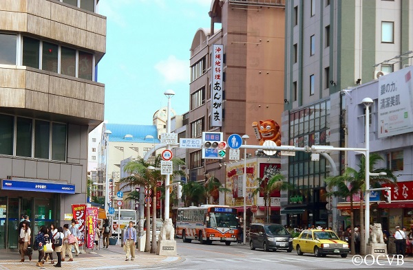 沖縄県庁近くに位置する那覇市の国際通りは、全長約1.6kmにわたって、お土産品店や雑貨店、居酒屋、カフェ、レストランなど多彩なお店が軒を連ねる観光ストリートです。 国際通りは、太平洋戦争で廃墟となった那覇市の中でいち早く復興を遂げたことから「奇跡の1マイル」と評された歴史を持っています。 毎週日曜日(雨天中止)12時~18時には、国際通りの区間約1.3km(県庁北口交差点から蔡温橋交差点の間)の一般乗用車を通行禁止し、歩行者優先道路となる「トランジットマイル」を開催。オープンカフェやストリートパフォーマンス、各種イベントや国際通りマルシェなど開催しています。