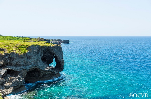 高さ30mの断崖絶壁が約2kmにわたって続く残波岬は読谷村にある日本有数の景勝地です。波が激しく打ちあがるさまは沖縄では珍しい風景で、岬の北側のエリアは海岸国定公園に指定されています。 晴れた日には慶良間諸島も眺望でき、沖縄本島で夕日が最後に沈む場所として知られる絶景スポットです。残波岬公園には白亜の灯台が建っており、駐車場から灯台手前までは舗装されていないゴツゴツとした岩場もあるのでビーチサンダルやヒールで歩くのはできるだけ避けましょう。 しかし遊歩道はきれいに整備されているので小さなお子様でも安心です。台風が近づいているときや通過後は非常に波が高いので近づかないようにしましょう。