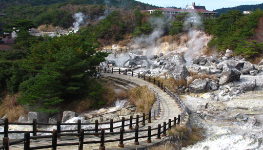 日本で最初に国立公園に指定された温泉地で、白濁した硫黄泉が特徴です。地底から噴き出す白い噴煙と硫黄のにおいが立ち込める雲仙地獄には遊歩道が設置され、30ほどの地獄めぐりが楽しめます。