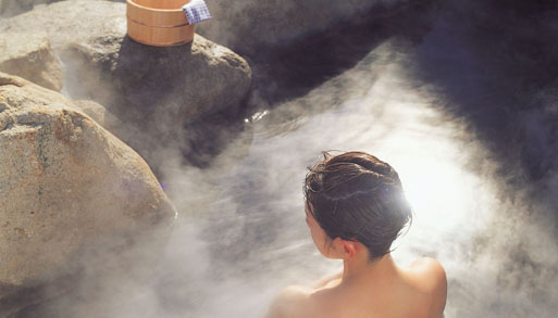 茶褐色をした硫酸塩泉の黄金の湯と、無色透明のメタケイ酸単純泉の白銀の湯があります。子宝の湯として知られるなど古くから女性の湯として名高く、婦人病に効果があるといわれています。